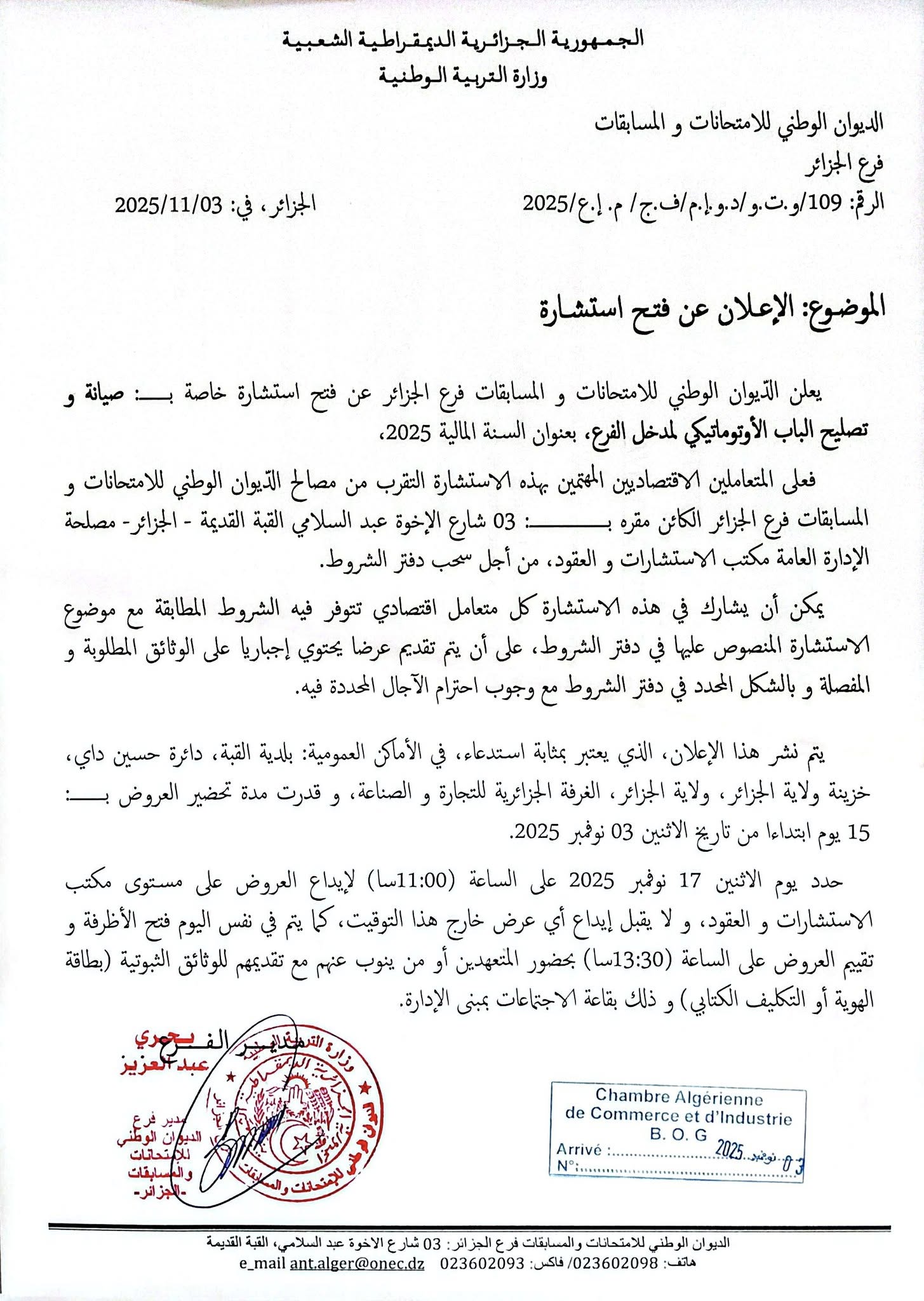 - Etablissement Public Hospitalier Hassen Badi El Harrach: Avis de consultation N° : 26/2023