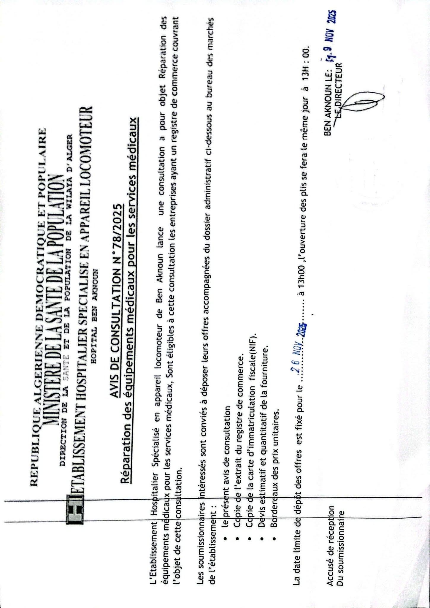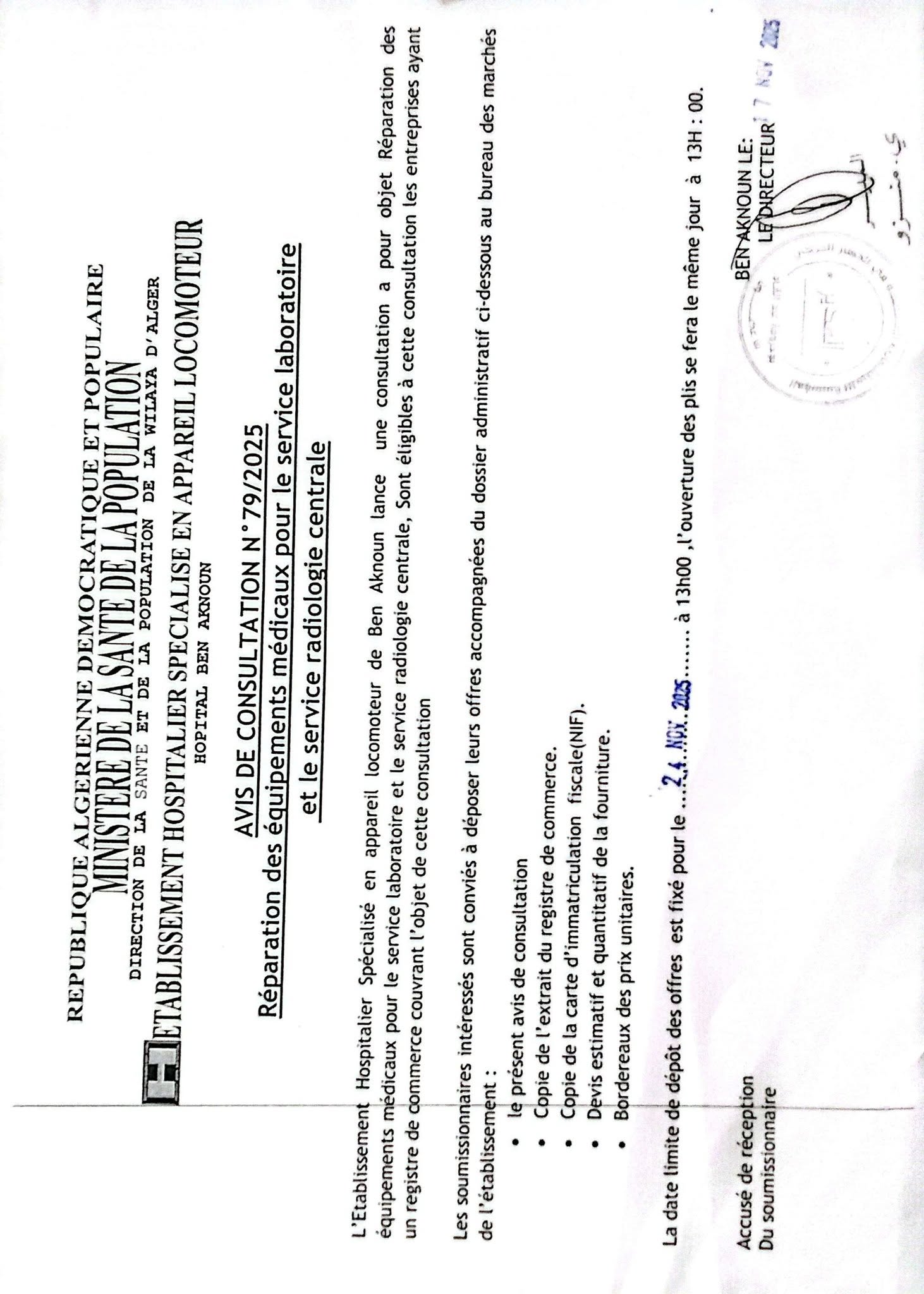 - Etablissement Public Hospitalier Hassen Badi El Harrach: Avis de consultation N° : 26/2023