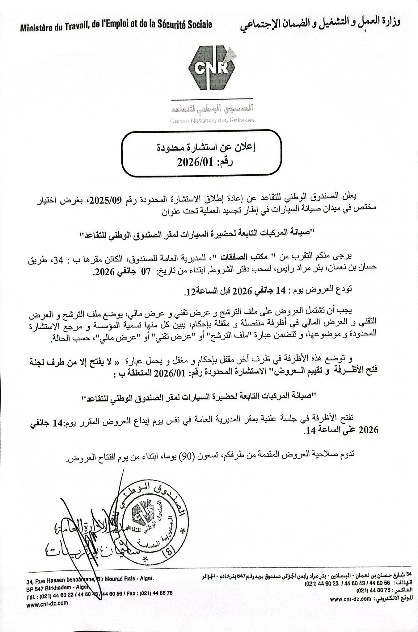 - CAISSE NATIONALE DES RETRAITES :AVIS DE CONSULTATION RESTREINTE N° 24/25/26/2023