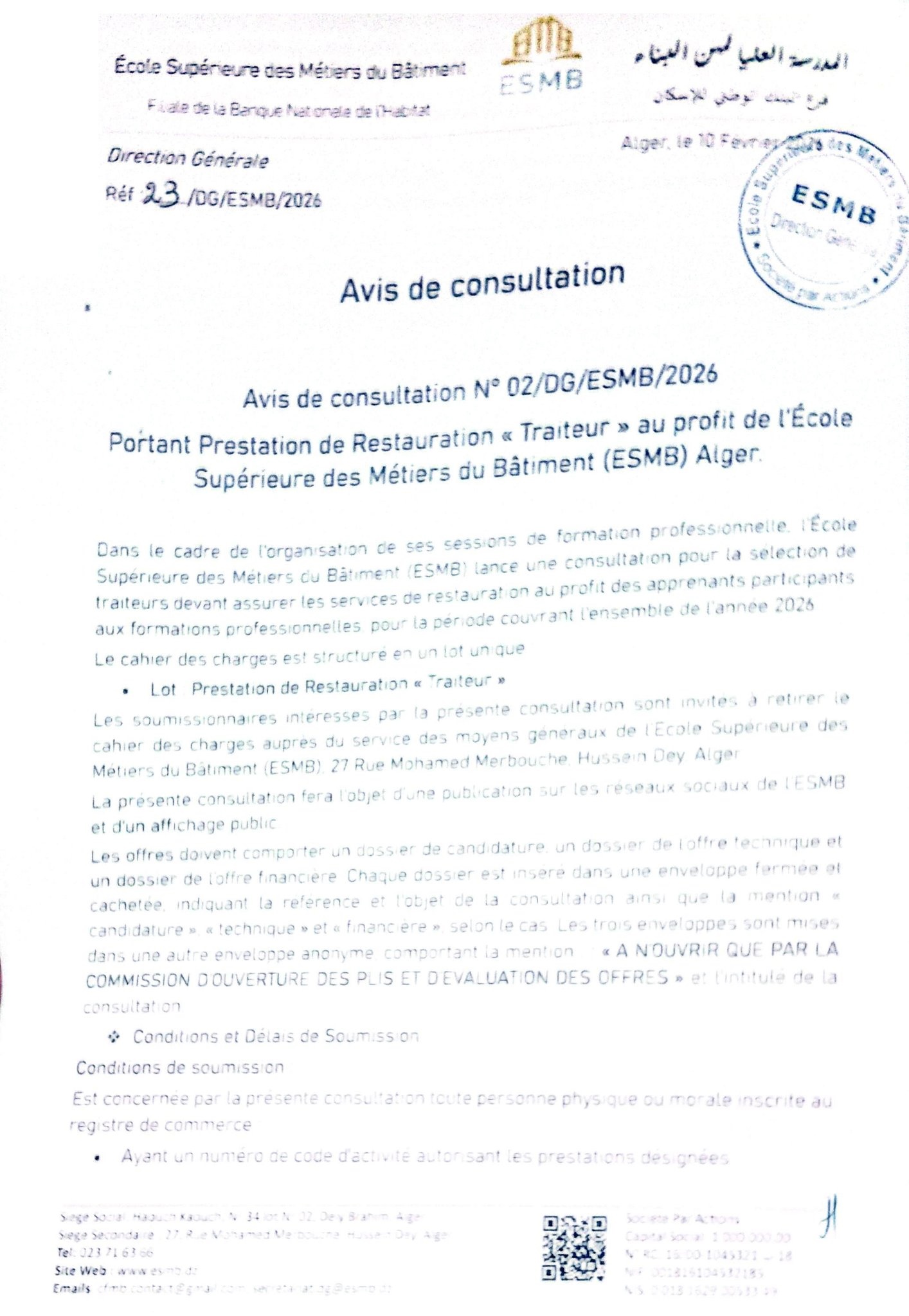 - Etablissement Public Hospitalier Hassen Badi El Harrach: Avis de consultation N° : 25/2023